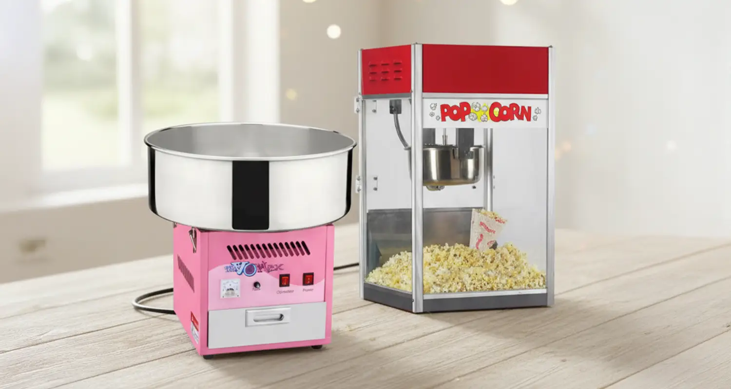 The most popular are cotton candy, popcorn, and snow cone machines. Ask about add-ons like warmers, extra syrups, bags, cones, and serving kits.