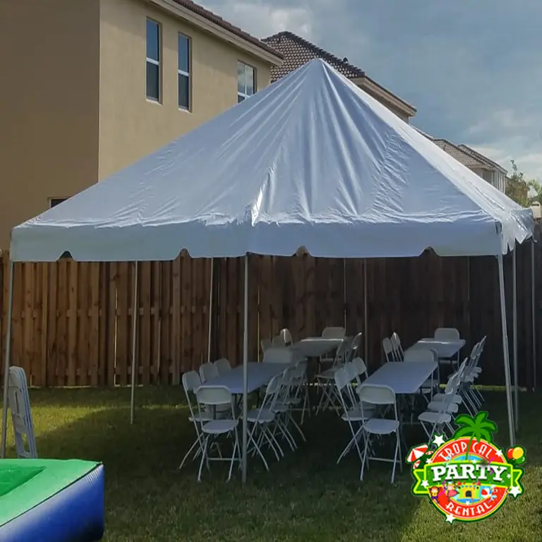 Create the perfect shaded area for your next event with our 20×20 Tent Rental! Ideal for birthdays, weddings, corporate events, and outdoor gatherings, this sturdy tent provides comfortable coverage for up to 50 guests. Its clean, elegant design fits any party theme and helps protect your guests from sun or light rain — making it a must-have for Miami events all year round.
